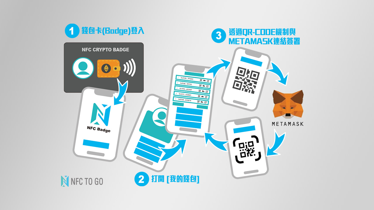 NFC Badge錢包卡,則是一張兼具電子名片與個人冷錢包的卡片;採用相容於 BIP-44 架構規範的 HD Wallet (Hierarchical Deterministic wallet),可以從單一個 seed 產生一樹狀結構儲存多組 Keypairs (私鑰和公鑰)。其優點是可以方便的備份(採12組助憶詞)、轉移到其他相容裝置,以及分層的權限控制等。而最大便利之處,便是可以搭配MetaMask來使用。NFC感應支付,幾乎已經成為現今智慧型手機的標配。